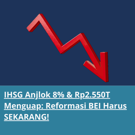 IHSG ambruk 13% ke 7.700 dalam sehari! MSCI freeze saham free float rendah, duit asing minimal Rp33T kabur. BEI-OJK janji reformasi: free float 15%, transparansi kepemilikan <5%, demutualisasi Q1 2026. Deadline Mei 2026 – gagal = turun ke Frontier Market bareng Kazakhstan!