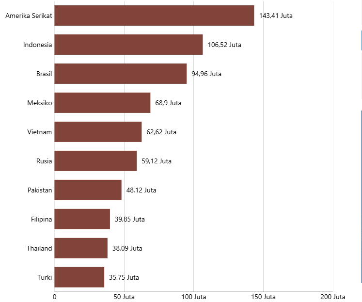 Sedangkan di indonesia sendiri, Menurut laporan We Are Social, ada sekitar 106,51 juta pengguna TikTok di Indonesia pada Oktober 2023. Jumlah itu menjadikan Indonesia sebagai negara dengan pengguna TikTok terbanyak ke-2 di dunia.