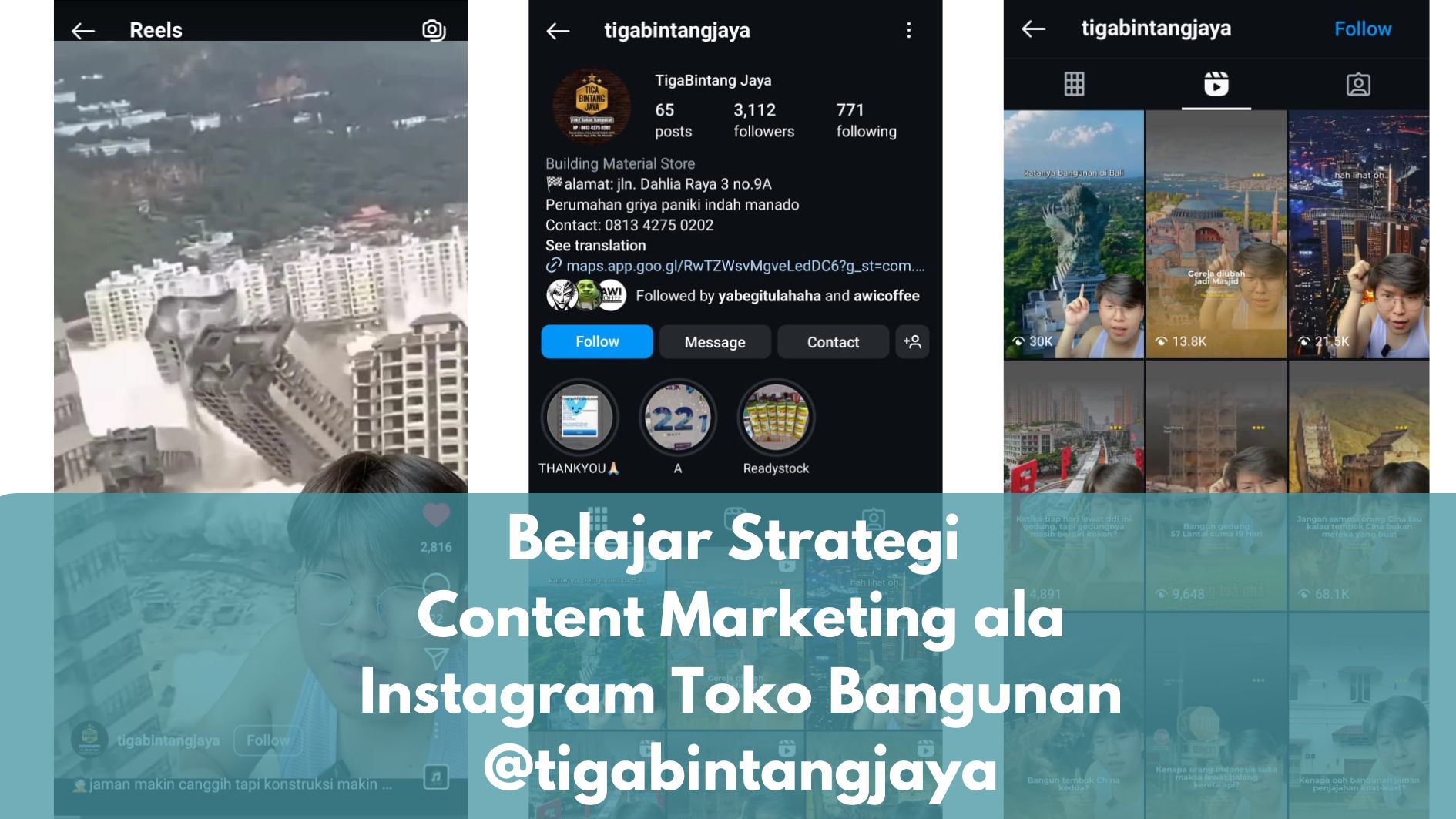 trategi content marketing Instagram ala @tigabintangjaya adalah bukti bahwa konten sederhana, jika dikemas dengan kreatif dan relevan, bisa jadi sangat powerful. Bahkan toko bangunan pun bisa viral dan membangun loyalitas audiens, jika mereka bisa Memahami audiens dengan baik, Membangun brand personality yang unik dan Aktif memanfaatkan komentar dan tren.
