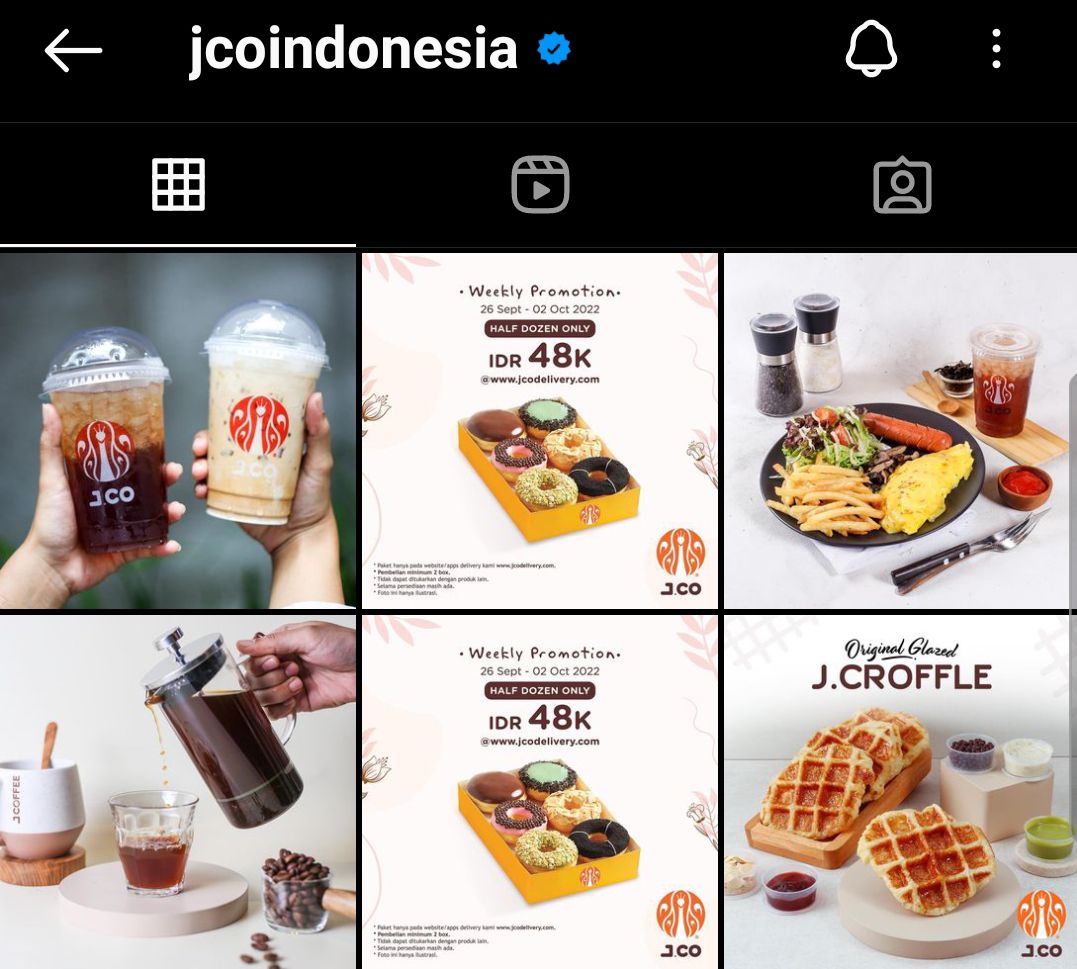 Penggunan komposisi gambar yang tepat juga digunakan oleh akun instagram brand @jcoindonesia yang menempatkan foto produk di tengah gambar sehingga audiens akan fokus pada produk tersebut dan penasaran dengan isi konten instagram produk.